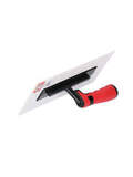 Пластиковое полотно устойчиво к коррозии и не вступает в реакцию с растворами, что делает кельму идеальной для работы с различными строительными смесями. Двухкомпонентная (2К) ручка гарантирует надёжный хват — инструмент не скользит даже в мокрых руках.