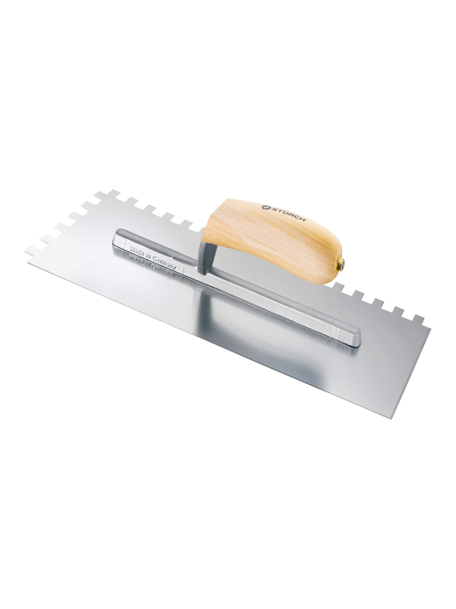 Кельма плиточника Storch — профессиональный инструмент для укладки керамической плитки, керамогранита и других облицовочных материалов. Модель сочетает продуманную эргономику, прочность конструкции и оптимальную форму рабочей части, обеспечивая ровный и экономичный расход клеевого состава.