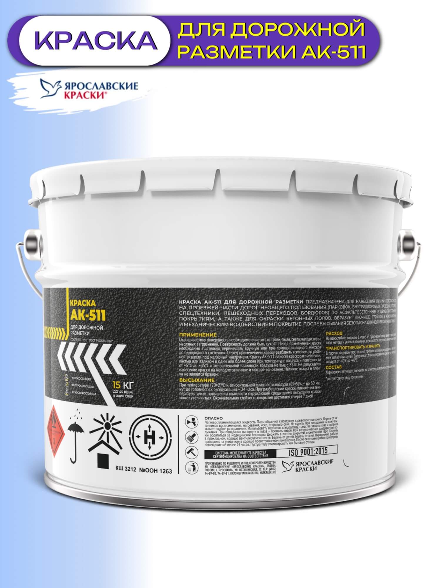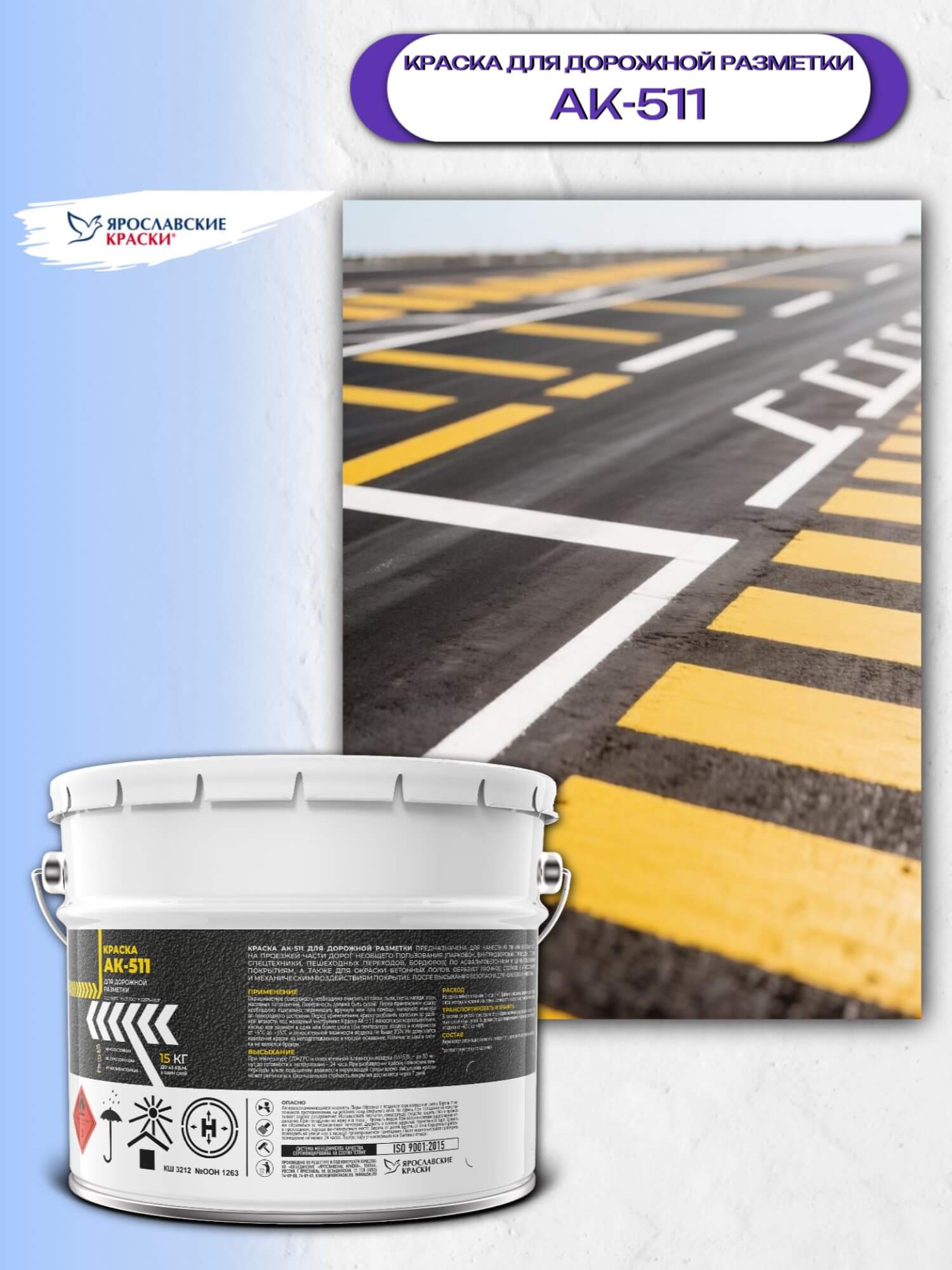 Краска для дорожной разметки "ЯрКраски" - специализированный лакокрасочный материал для нанесения линий, символов и знаков на дорожных покрытиях. краски для дорожной разметки АК-511 создает прочное, износостойкое покрытие.