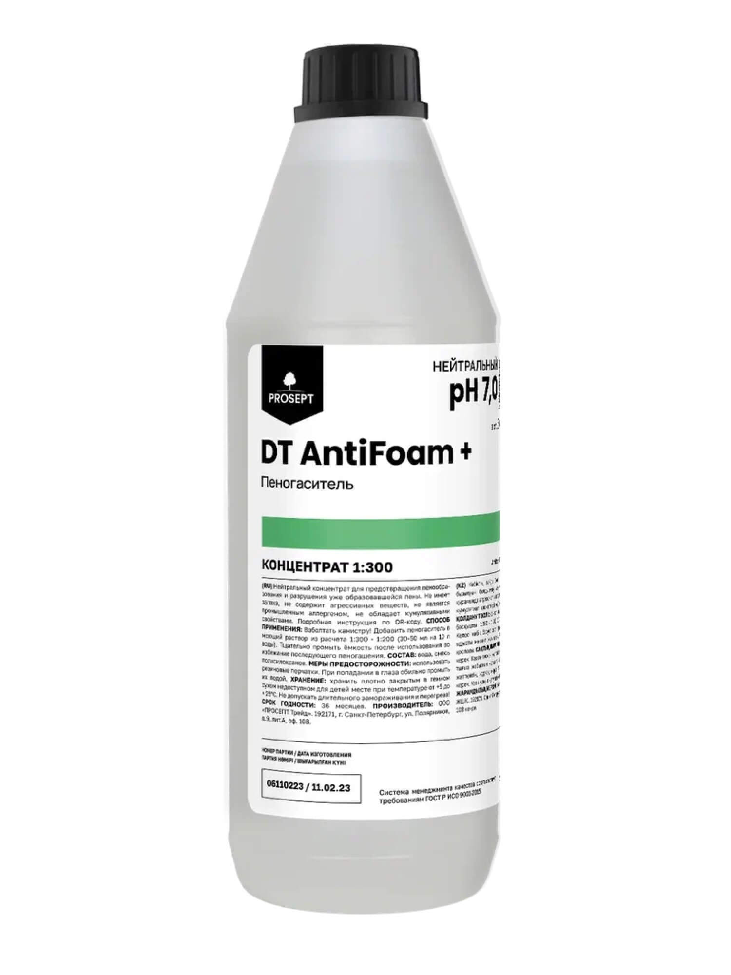 Prosept Prof DT AntiFoam+ — инновационный пеногаситель для профессионального клининга и бытовой уборки. Концентрированное средство эффективно предотвращает образование пены и устраняет уже имеющуюся пену при использовании моющих растворов.