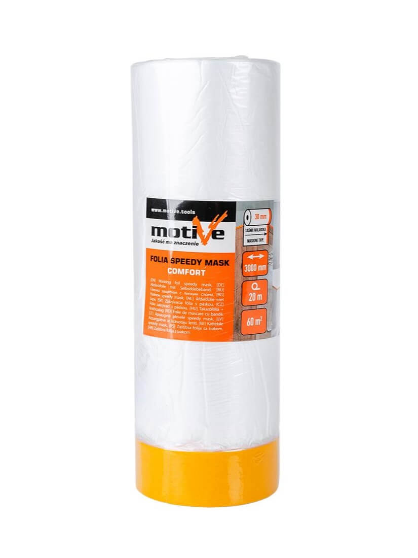 Тонкая пленка, предварительно оснащенная лентой, обеспечивает эффективную подготовку и защиту поверхности от грязи или повреждений во время различных работ.