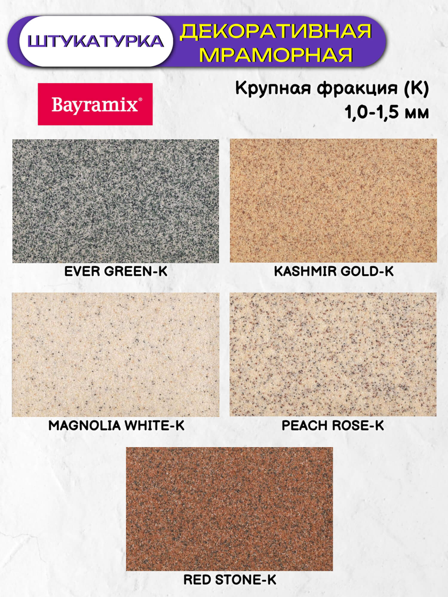 Мраморная декоративная штукатурка Bayramix - профессиональное решение и эффектное оформление фасадов и неповторимый колорит помещений благодаря особой искристости и специально подобранной крошке.